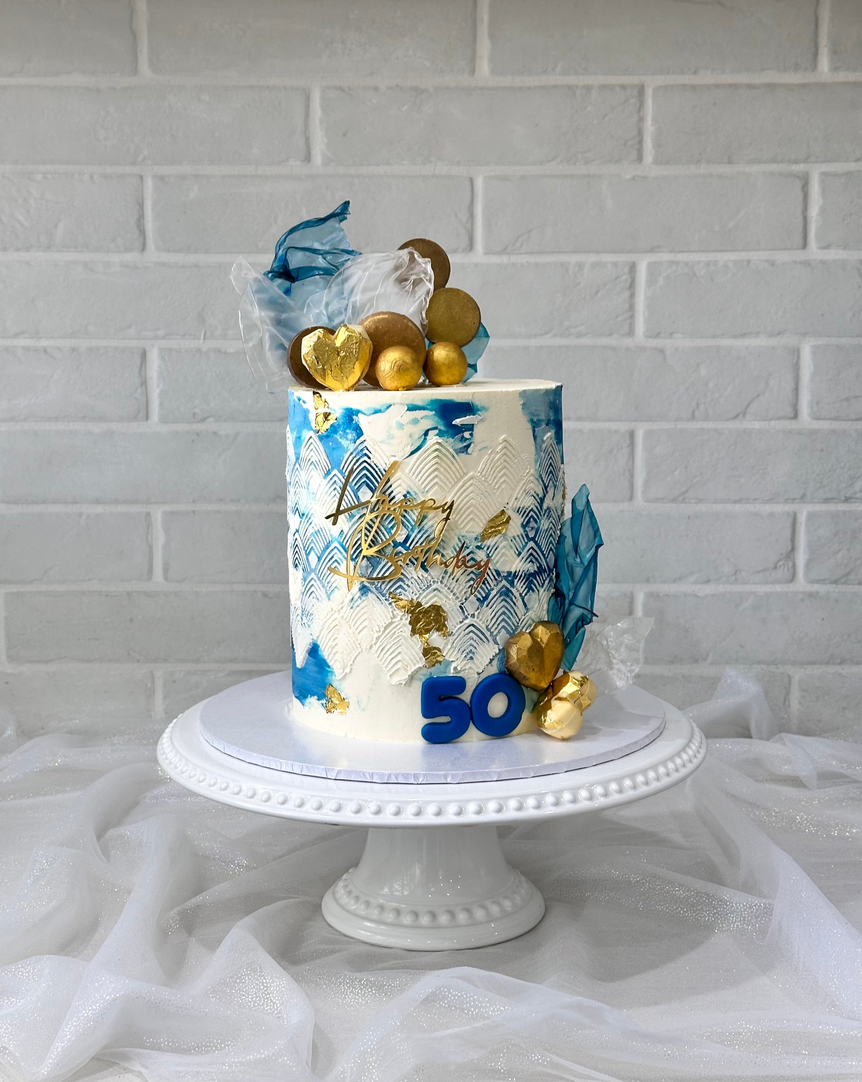 Blue and Gold Buttercream Cake